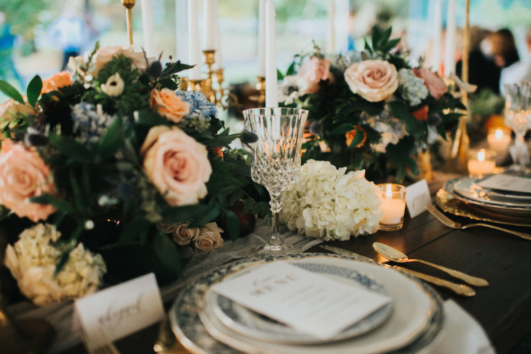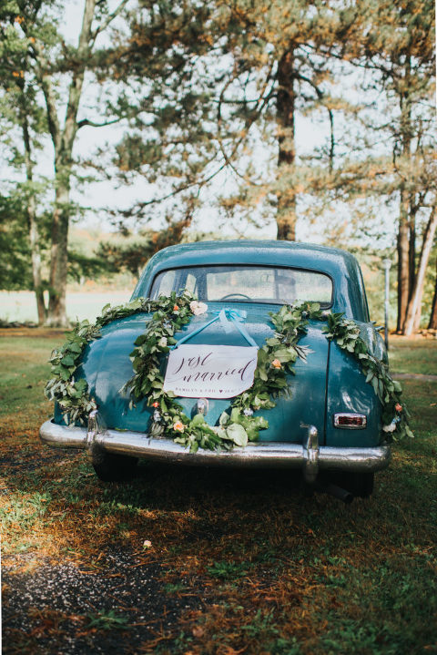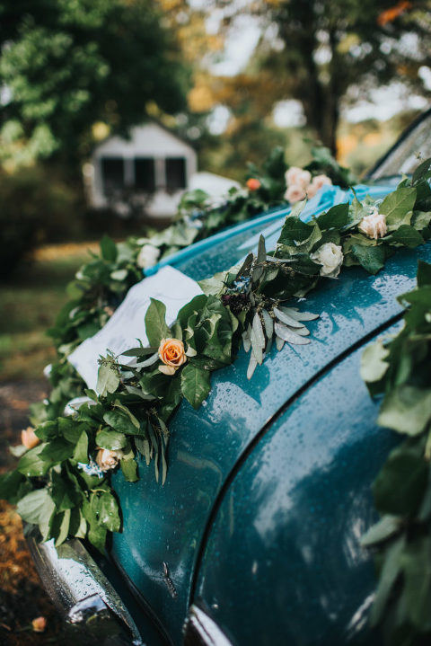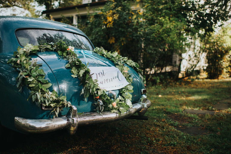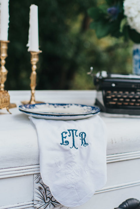 What I loved the most about our wedding day was the fact we were able to bring elements to our wedding that were from the area of the house. Items that meant something to each of us and had a true meaning. The blue and white china was something his grandmother collected and had several pieces of. We were very blessed to have the opportunity to have a few of those pieces and I have made it my passion to collect more pieces to create our own heirloom china set for our china hutch at home. We decided that it would make a great fit for our wedding as well so we were able to use some of those pieces to truly bring some of those beloved elements into our special day remembering her memory as we carried on with our day. The buffet table I found at a local dealer and refinished to use for our sweets/cake table. Several of the glasses we used were also collected from vintage shops and a good majority of all the decor was purchased second hand or found at Home Goods to bring to life the vision of our wedding day. Every bit was perfect, and I love how this day was everything I had ever dreamed of. We were even able to find a vintage car, which by the way is for sale if anyone wants to purchase it!