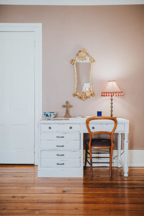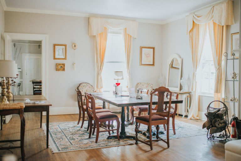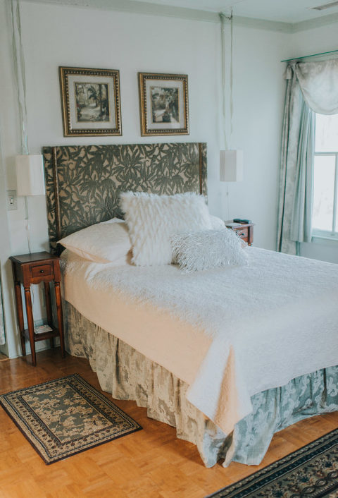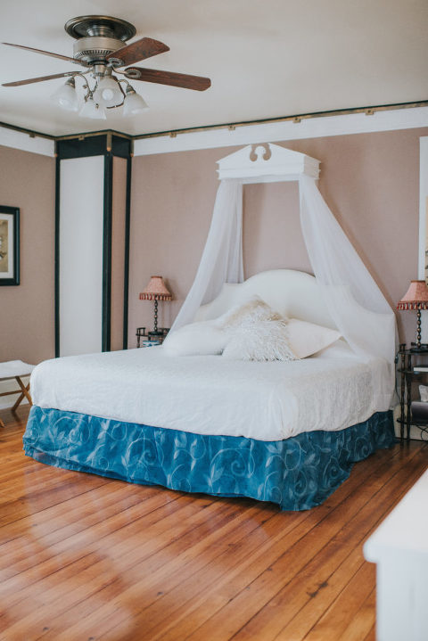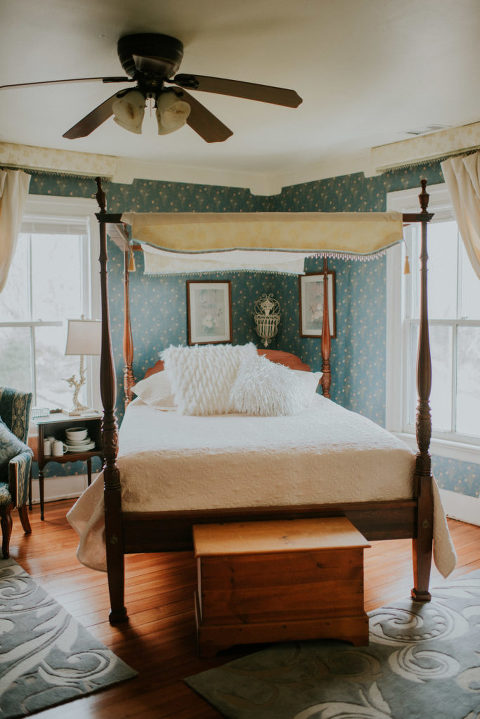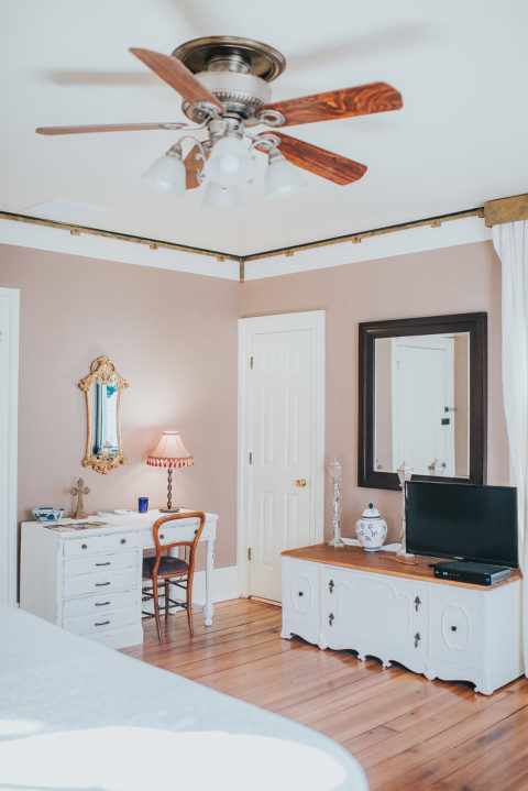 The Greenock Manor offers four bedrooms inside the manor and a guest cottage with a sink in a tub! Each room offers a private bath, and gorgeous antique furniture along with modern convinces such as TV and mini refrigerator.